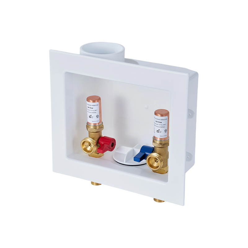 Boîte de drainage pour machine à laver avec raccord à sertissage 1/2" et amortisseur de chocs hydrauliques en laiton